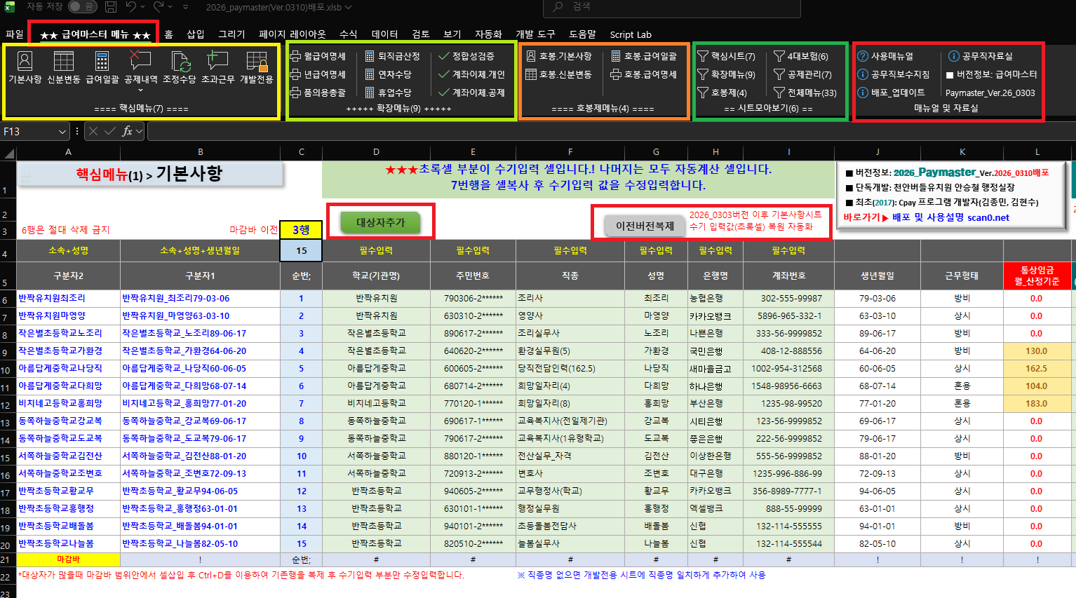 | 2026_Paymaster 급여마스터 3월 버전 엑셀 급여 프로그램 화면 UX 전면 리뉴얼 |