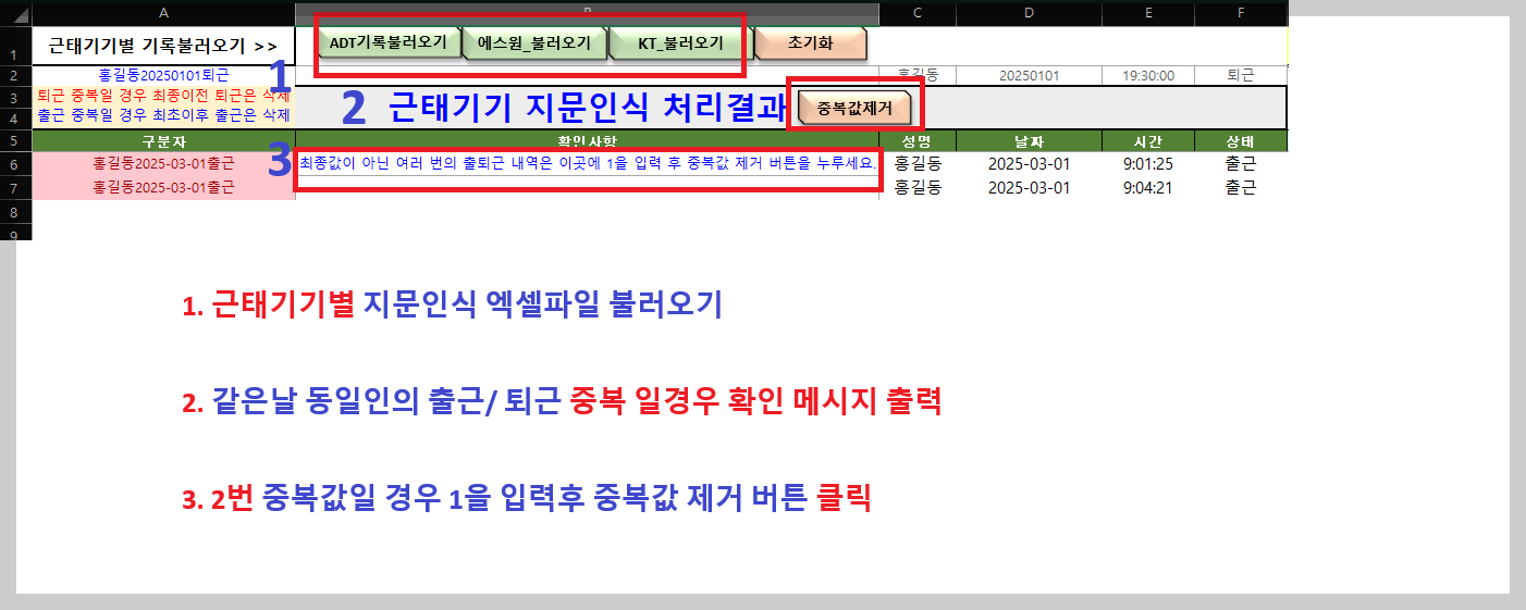 - (소확엑셀) 근태기기 지문인식 확인 자동화(ADT, KT, 에스원) 2025.06.26
